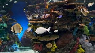 2. 海洋生物的生动画面:海龟、鲨鱼、海星等海洋生物在珊瑚礁间穿梭,展现出生机勃勃的海洋世界。
